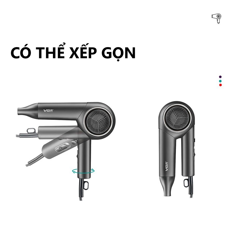 1 . Công suất cao: Máy sấy tóc VGR V-420 cung cấp công suất từ 1600W-2000W, cho phép làm khô tóc nhanh chóng và giảm thời gian tạo kiểu cho bạn.